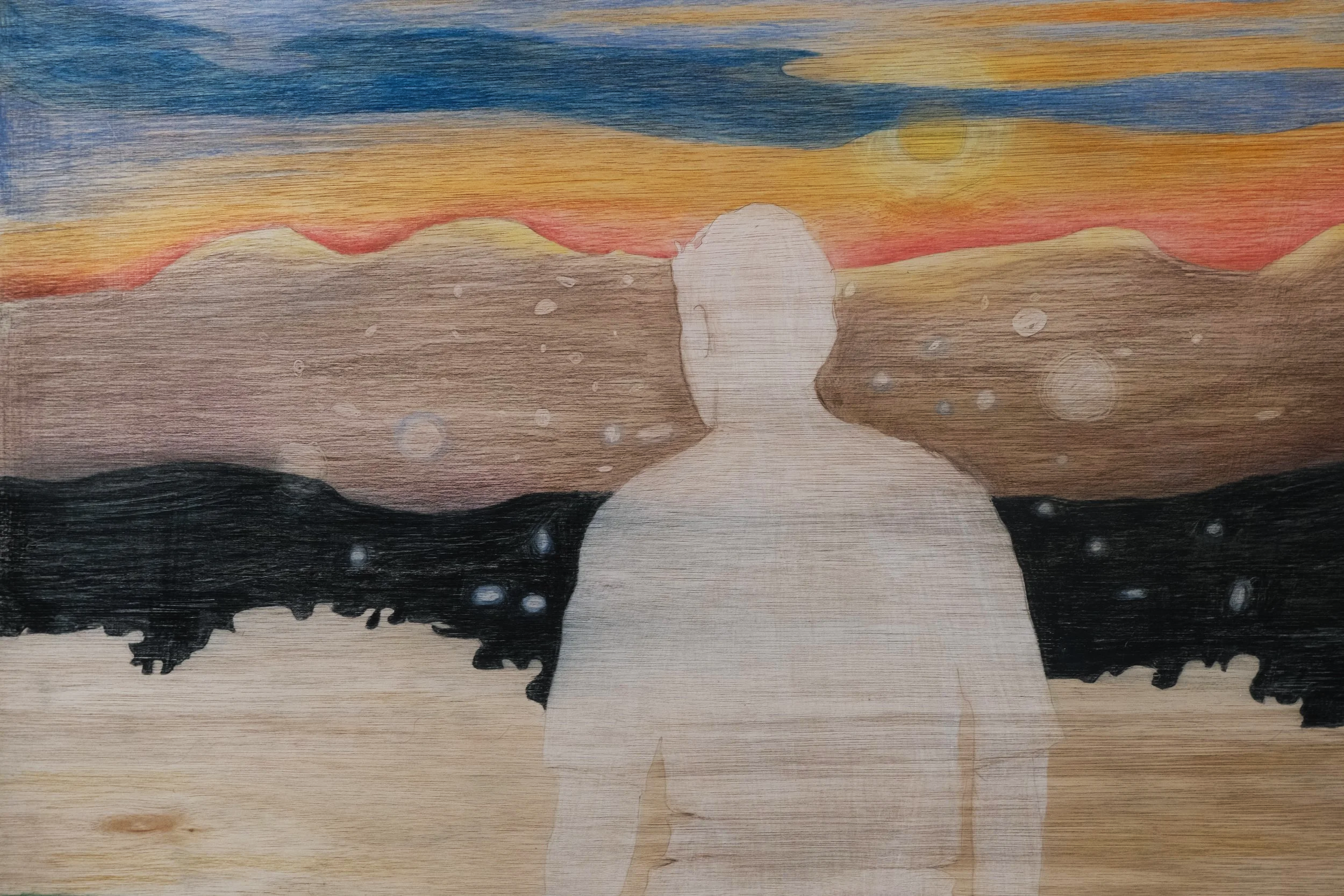 Red Dot. Wood-dye and water-mixable oils on plywood, finished with shellac, 2025